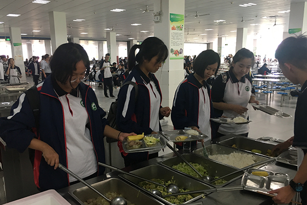 学校为同学们准备了丰盛的饭菜,同学们自助取餐