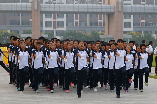 我校隆重举行2015级高一军训阅兵式